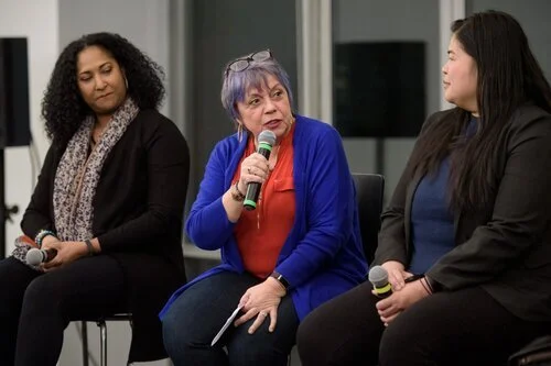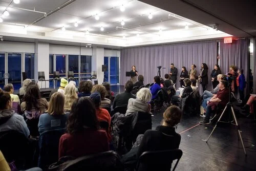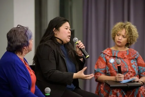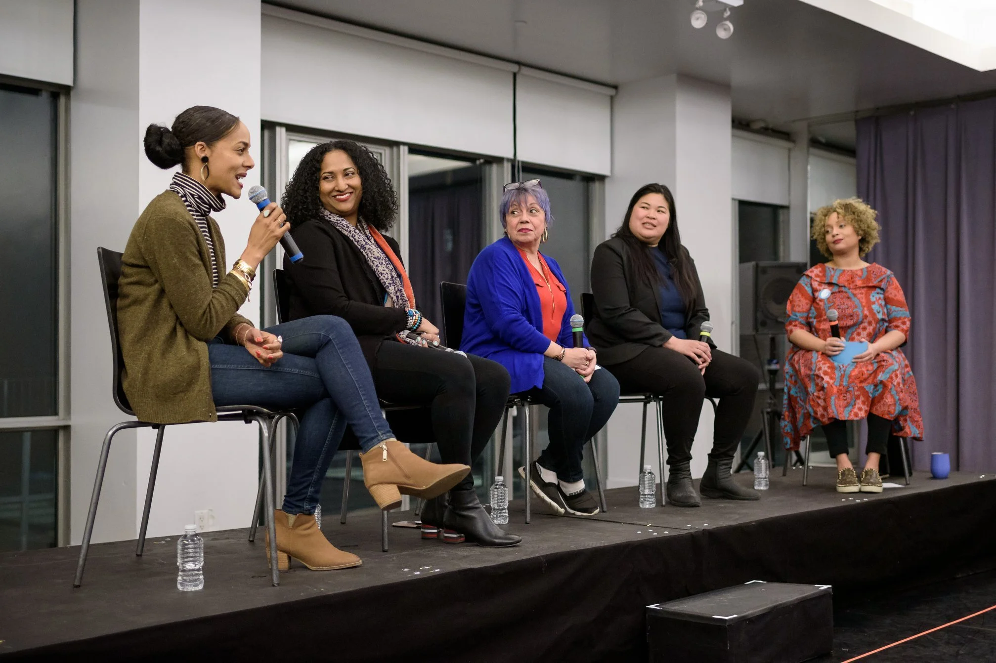 Lisa Lucas, Sarinya Srisakul, Aurora Flores, Kristina Newman-Scott, Rev. Kaji Douša, Sayu Bhojwani, and Brian Tate. Photo: Ian Douglass